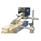 printer and holds the diverter pulleys, an applicator arm with adjustable height to suit various box- and product sizes, and a